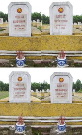 Mộ phần của Cố giáo sư Đặng Văn Ngữ và 3 đồng đội được quy tập tại nghĩa trang liệt sĩ