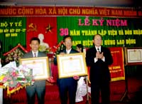 Đ/c Lê Hữu Lộc-PCT UBND tỉnh trao Huân chương Lao động hạng 3 cho TS.Triệu Nguyên Trung và TS. Nguyễn Đình Tân tại lễ kỷ niệm |