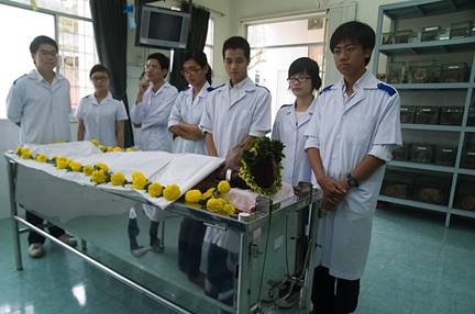 Tại trường đại học y khoa Huế trước năm 1975, cứ mỗi một nhóm 10 sinh viên năm thứ nhất được sắp xếp thực hành phẫu thuật trên 1 tử thi người chết để học tập môn giải phẫu học hay cơ thể học sau khi học xong phần lý thuyết. Đợt thực hành mổ xác tử thi được bảo quản bằng hóa chất thường thực hiện trong khoảng 3 tháng để sinh viên có đủ thời gian học tập các phần cấu tạo của cơ thể người từ bên ngoài cho đến bên trong, không bỏ sót một phần chi tiết nào để thu thập những vấn đề cần thiết. Tôi và các bạn cùng lớp được thực hành môn học này dưới sự hướng dẫn của các thầy và bác sĩ trong bộ môn giải phẫu theo thời gian quy định để kết thúc bằng kỳ thi kiểm tra và lễ Macchabée tri ân những người đã hiến thân mình cho y học. Từ nhà để xe ở sân sau của trường, vào cửa ngay trước đó tại tầng trệt về phía trái là phòng có bể chứa hóa chất formol dùng để ngâm xác tử thi khi được tiếp nhận và xử lý lưu trữ; đi tiếp theo hành lang về phía phải là một phòng rộng với các bàn inox dùng để đặt xác tử thi phẫu thuật. Chính phòng thực tập này là nơi chúng tôi thực hành mổ xác tử thi trong khoảng thời gian quy định và thi kiểm tra hoàn thành môn giải phẫu học cơ thể người theo yêu cầu đào tạo khởi đầu của sinh viên trường y. Ở buổi thực tập đầu tiên, mặc dù đã mặc áo choàng, đội mủ kín đầu, mang khẩu trang nhưng khi tiếp xúc với tử thi được ngâm và xử lý hóa chất vẫn cứ thấy rợn người; mắt cay xè, nước mắt và dịch mũi lại tiết ra do hơi formol xông lên nồng nặc khá khó chịu nhưng sau hơn một tuần đã quen dần. Một số bạn học nữ còn sợ nên cứ đứng lấp ló bên ngoài cửa với vẻ mặt lo lắng không chịu vào sát bàn đặt tử thi để thực hành, khi bác sĩ hướng dẫn của bộ môn lên tiếng mới bước dần đến bàn mổ. Để bỏ qua sự sợ hãi, lo lắng lúc đầu; chúng tôi động viên nhau khi tiếp xúc mổ xác tử thi đầu óc phải luôn nghĩ rằng những người này đã thầm lặng cống hiến thân xác của mình cho y học; vì vậy nhiệm vụ của mỗi một sinh viên y khoa là phải nghiêm túc thực hành phẫu thuật tử thi một cách thật tốt, không được sợ hãi hay đùa giỡn vì ở đây còn mang yếu tố tâm linh; tất cả cần tập trung cho động cơ học tập để trở thành bác sĩ giỏi có trình độ, năng lực cứu người, giúp đời sau này.