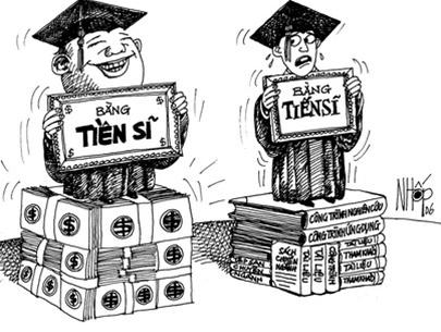 Khi đất nước mở cửa hội nhập, nhiều cán bộ có chức quyền muốn thăng tiến hay giữ vững cái ghế của mình chạy “bổ túc” các văn bằng thạc sĩ, tiến sĩ, bằng tiếng Anh A, B, C... (Nguồn : NGUYỄN TÂM THỨC- http://tuoitre.vn/) |