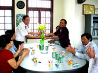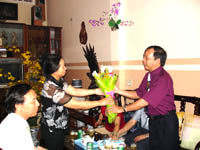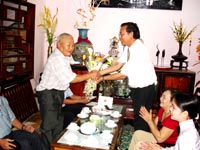 Đoàn thăm và tặng hoa gia đình TS Triệu Nguyên Trung | ThS. Lê Ngọc Linh-Phó Viện trưởng-Bí thư Đảng ủy đã chúc mừng sức khoẻ đến Ts. Nguyễn Đình Tân |
