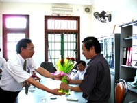 Lãnh đạo Viện tặng hoaTS Nguyễn Văn | Chương và BS Nguyễn Tân |