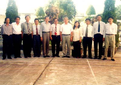 GS.TS. Đỗ Nguyên Phương ( từ phải sang trái : người thứ 5) đến thăm Viện sốt rét - KST-CT Quy Nhơn |