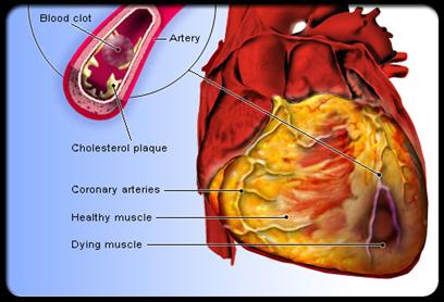 Cơn đau tim và đột quỵ là những trường hợp thường cấp tính và chủ yếu là do sự tắc nghẽn có thể ngăn chặn dòng máu chảy đến cơ quan tim hoặc bộ não. Lý do phổ biến hay gặp nhất cho điều này là hình thành các mảng xơ vữa chất béo lắng đọng trên các thành bên trong của các mạch máu cung cấp cho tim hay não. Đột quỵ cũng có thể được gây ra do chảy máu từ một mạch máu trong não hoặc từ các cục máu đông.