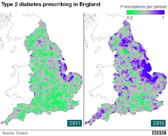 Ngày 10/10/2016. BBC News-Đái tháo đường type 2: Dữ liệu cho thấy các điểm nóng về số ca mắc (Type 2 diabetes: Data reveals hotspots for cases). Theo số liệu từ dịch vụ y tế quốc gia (NHS), đơn thuốc cho bệnh đái tháo đường type 2 đã tăng tới một phần ba ở Anh trong 5 năm qua từ 26 triệu ca đến 35 triệu ca mỗi năm.