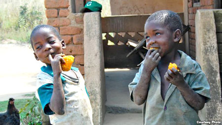 | Trẻ em được nhìn thấy đang thưởng thức củ khoai lang màu cam (Ảnh - HarvestPlus) |