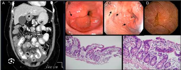Hình 3. Kết quả CT-scan và mô bệnh học hệ tiêu hóa biểu hiện thâm nhiễm tăng BCAT