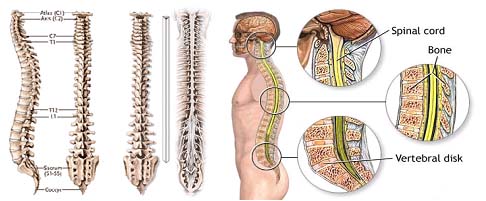 -Ở giai đoạn muộn, người bệnh VCSDK có các biến dạng cột sống rõ rệt như eo lưng dẹt do teo cơ cạnh cột sống, lưng gù, cổ vươn về phía trước;