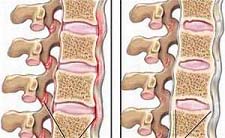 -Đĩa đệm hẹp lại và ở giai đoạn muộn các thận đốt sống dính sát lại với nhau, bờ thân đốt sống phía trên và dưới đĩa đệm bị phá hủy tạo hang lao, thân đốt sống bị xẹp, nhất là ở phía trước làm cho đốt sống có hình chêm và cột sống bị gù, mỏng gai của đốt sống đó lồi ra phía sau;