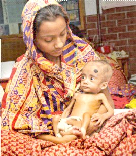 Một bà mẹ người Bangladesh bế con đang được điều trị suy dinh dưỡng tại Trung Tâm Nghiên Cứu Bệnh Tiêu Chảy, tại Dhaka |