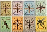 Timor (Anopheles sundaicus), Angola (A. funestus), Cabo Verde (A. pretoriensis), Macau (A. [hyrcanus] sinensis), Mocambique (A. funestus), Estado da India (A. fluviatilis), Guiné (A. gambiae), S. Tomé e Principe (A. gambiae).