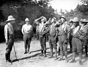 Hình 7. Giảng giải một số kiến thức có được về điều trị sốt rét thời chiến tranh cho binh lính  | Hình 8. Binh lính Anh uống thuốc Quinine như hình thức điều trị hàng loạt (MDA)  |