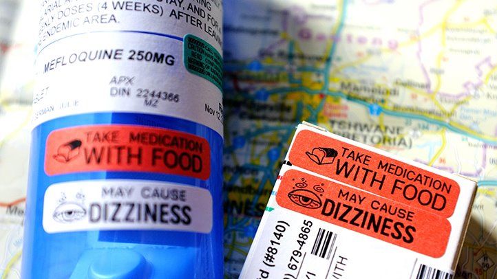 Hình 12. Hướng dẫn uống thuốc sốt rét với thức ăn và tác dụng phụ khi dùng thuốc cũng được mô tả