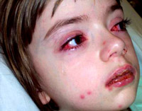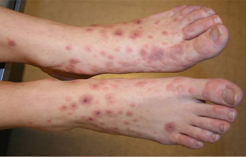 Hội chứng hồng ban đa dạng có bọng nước còn được gọi là Hội chứng Stevens-Johnson gây nên do dùng các loại thuốc như penicilline, streptomycine, tetracycline, sulfamide chậm; thuốc an thần, hạ sốt, giảm đau, chống viêm... Sau khi dùng thuốc từ vài giờ đến khoảng 15-20 ngày, người bệnh thấy mệt mỏi, ngứa khắp người, có cảm giác nóng ran, sốt cao, nổi ban đỏ; nổi các bọng nước trên da, các hốc tự nhiên như miệng, mắt, mũi, tai, hậu môn, niệu đạo, âm đạo... Sau đó dần dần dẫn đến viêm loét, hoại tử niêm mạc các hốc tự nhiên này và có thể kèm theo tổn thương gan, thận; thể nặng dễ gây nên tử vong.