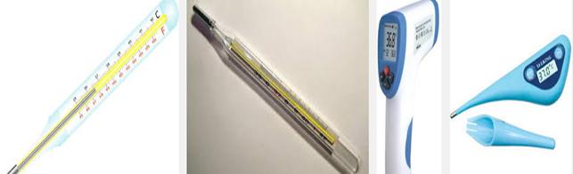 -Nhiệt kế thủy ngân (glass mercury thermometer) rất thông dụng, nhưng nay ít người dùng, nhất là ở trẻ em, vì nhiều người e ngại nhiệt kế vỡ, thủy ngân vào miệng. Thực ra thủy ngân trong nhiệt kế rất ít.