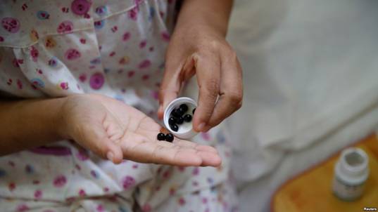 Một phụ nữ bị ung thư cổ tử cung uống thuốc tại một cơ sở điều trị ở Bắc Kinh, Trung Quốc, ngày 23 tháng 6 năm 2016.
